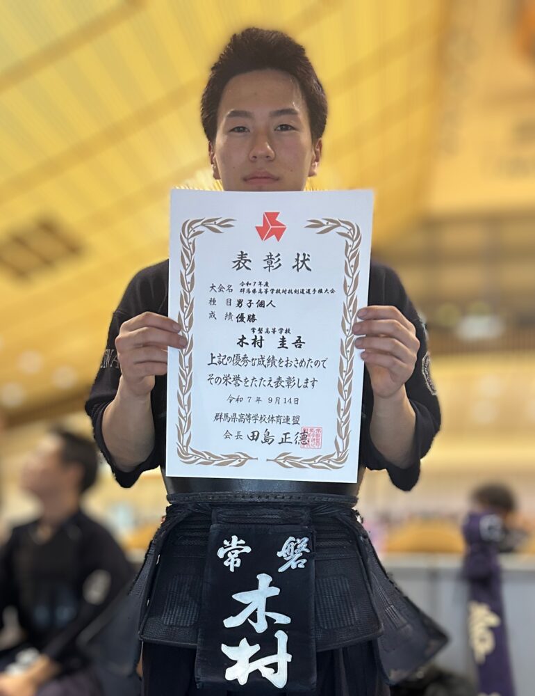 3月15日(日)に開催された「第4回彰劔旗・かりがね杯」にて本校の男子剣道部が団体で優勝し、個人戦でも木村圭吾くんが優勝を果たしました。