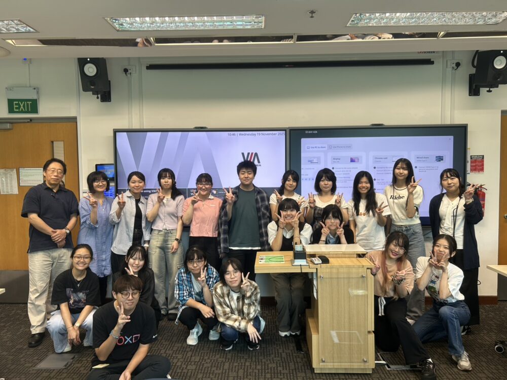 今日は時々陽射しもあり、雨の心配はありませんでした。ホテルから徒歩でシンガポール・マネジメント大学へ向かい、大学見学、学生との交流(B&Sプログラム)を行いました。大学では5名の学生達が出迎えてくれました。皆すぐに打ち解けて、和やかな雰囲気の中で始まりました。まず各班に分かれて、それぞれ学生(バディ)と共にキャンパス内を見学しました。大学構内は試験期間中で、緊張感が漂っていました。その後、教室に入り、それぞれの班が学生とディスカッションを行いました。生徒達は事前に用意していた質問を投げかけ、一気に議論が盛り上がりました。真剣な眼差しでのやり取りだけでなく、身振り手振りも交えて、時には笑い声も起こり、瞬く間に時間が過ぎました。これらは事前学習の成果でもあり、様々な自信につながったと思います。ディスカッションの後は、各班がバディと共にシンガポール国立博物館を見学してプログラムは終了しました。