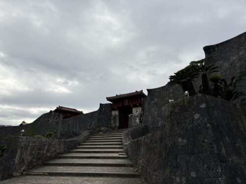 本日は修学旅行最終日となりました。朝食をとり、首里城公園へ向かいました。首里城公園では、クラス集合写真を撮った後、ガイドさんの案内に従い、首里城公園内を見学しました。今回、時間の関係で、有料区域を見学することはできませんでしたが、グスク特有の中国風の城壁や守礼門などをみることが出来ました。その後は、那覇空港を出発し、14時10分に羽田空港に到着しました。予定よりは遅くなりましたが、18時35分にバスターミナルおおたに到着し、無事修学旅行を終えることができました。