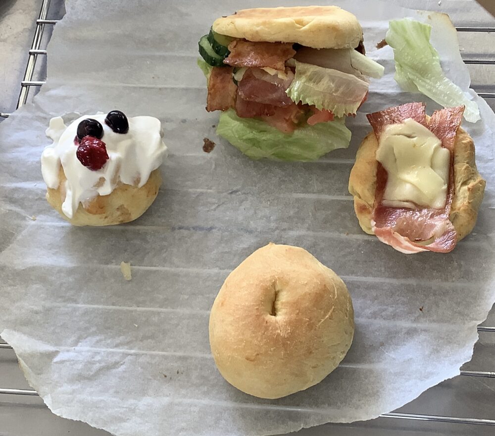 3年生は前回の応用で「アレンジパン」を作りました。それぞれ材料を持参して、作り方を調べて作りました。とてもおいしく出来上がり、みんな大満足でした!!